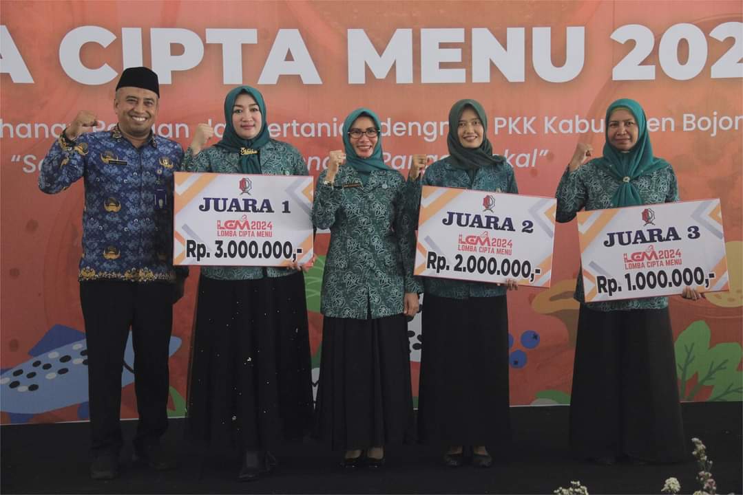 BOJONEGORO – Dinas Ketahanan Pangan dan Pertanian (DKPP) Kabupaten Bojonegoro bersama Tim Penggerak Pemberdayaan Kesejahteraan Keluarga (TP PKK) menggelar Lomba Cipta Menu 2024, Senin (20/52024) di Pendopo Malowopati. Lomba tersebut bertema ‘Sehat dan Bahagia dengan Pangan Lokal’ yang secara khusus memanfaatkan berbagai bahan di pekarangan rumah.
