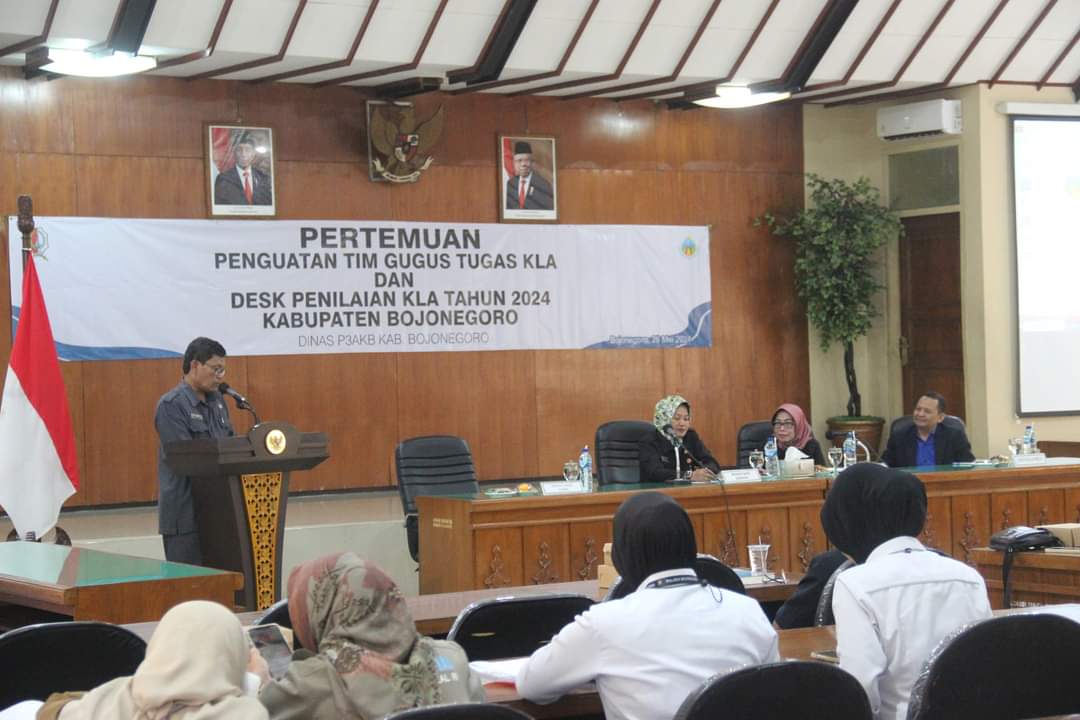 BOJONEGORO – Pemerintah Kabupaten Bojonegoro menggelar rapat penguatan Tim Gugus Tugas Kabupaten Layak Anak (KLA) dan Desk Penilaian KLA, Selasa (28/5/2024) di Ruang Angling Dharma Lantai 2 Gedung Pemkab Bojonegoro.
