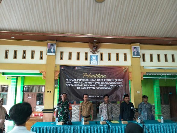 Senin (24/06/2024) seluruh Babinsa Anggota Koramil 0813-09/Sumberrejo untuk mewakili Danramil Kapten Inf Kasbolah, menghadiri acara pelantikan dan pengambilan sumpah janji anggota Pemutakhiran Data Pemilih (Pantarlih) yang dilakukan serentak oleh Ketua Panitia Penyelenggara Kecamatan (PPK) Kecamatan Sumberrejo, terdapat 26 Desa dan dibagi menjadi 5 zona.