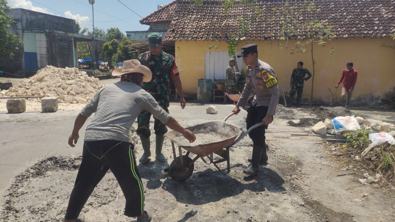 LAMONGAN – Untuk menciptakan kemanunggalan antara TNI dan masyarakat, anggota Koramil 0812/19 Laren bersama warga melaksanakan kerja bakti pengecoran perbaikan jembatan yang rusak akibat tergerus air. Perbaikan ini dilakukan agar aktivitas warga dapat berjalan lancar.