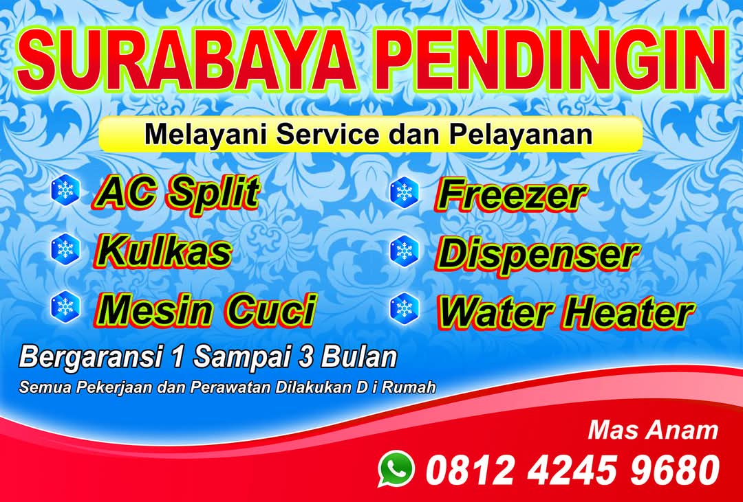 Kalau butuh servis, cuci, isi freon, sampai perbaikan AC, langsung hubungi Surabaya Pendingin di Nomor Whatsapp 081242459680 dijamin puas. (aj)