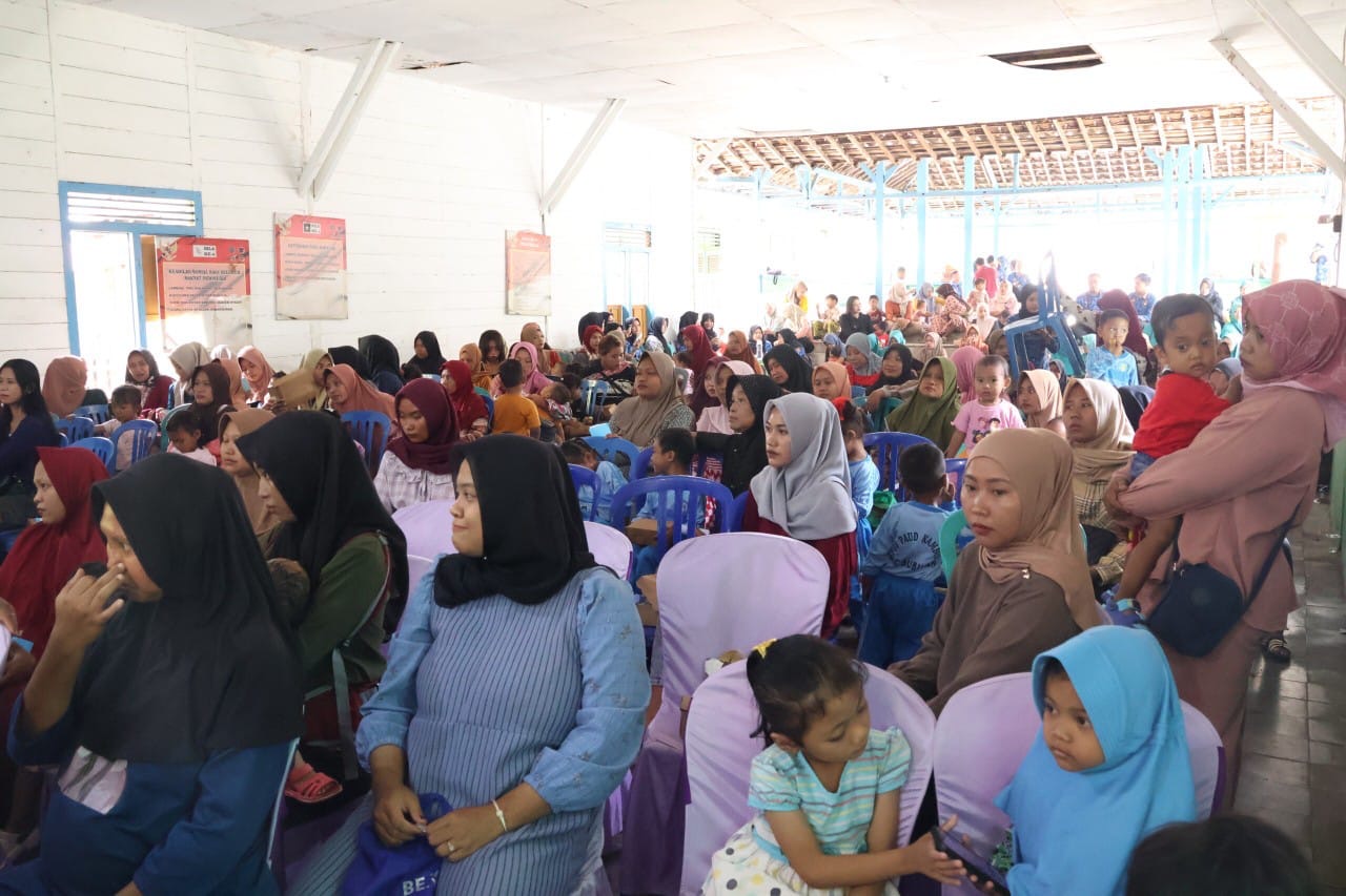 Anak-anak tampak riang berlarian di sekitar ruangan, sementara para ibu serius mencatat penjelasan penting dari petugas kesehatan.