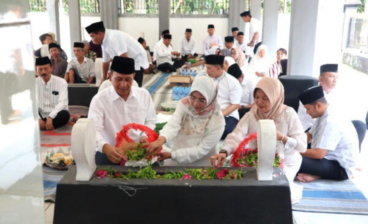Suasana penuh kekhusyukan menyelimuti area makam, hanya lantunan doa dan hembusan angin yang terdengar.
