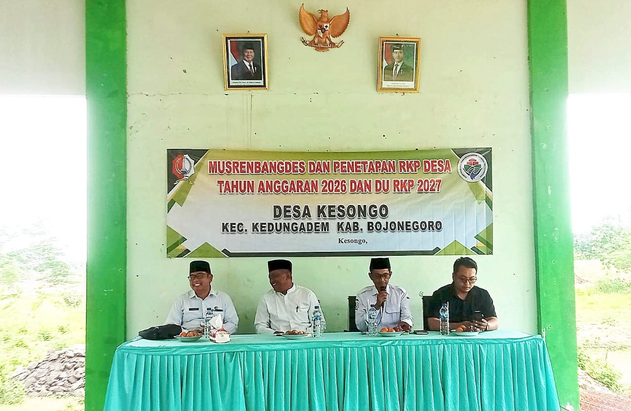 BOJONEGORO – Pemerintah Desa (Pemdes) Kesongo, Kecamatan Kedungadem, Kabupaten Bojonegoro, menggelar kegiatan Musyawarah Perencanaan Pembangunan Desa (Musrenbangdes) sekaligus Penetapan Rencana Kerja Pemerintah Desa (RKPDes) Tahun Anggaran 2026 serta penyusunan Daftar Usulan (DU) RKPDes Tahun 2027, pada Rabu, 22 Oktober 2025.