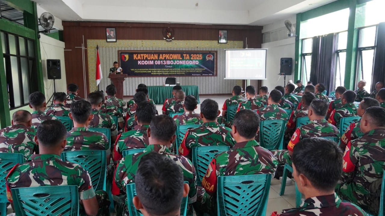 BOJONEGORO – Komando Distrik Militer (Kodim) 0813 Bojonegoro terus memperkuat kualitas prajuritnya. Melalui kegiatan Peningkatan Kemampuan (Katpuan) Aparat Komando Kewilayahan (Apkowil) Tersebar Tahun 2025, para Bintara Pembina Desa (Babinsa) dari seluruh Koramil dan Posramil di jajaran Kodim Bojonegoro dibekali berbagai materi penting untuk meningkatkan profesionalisme dan kepekaan sosial di tengah masyarakat.