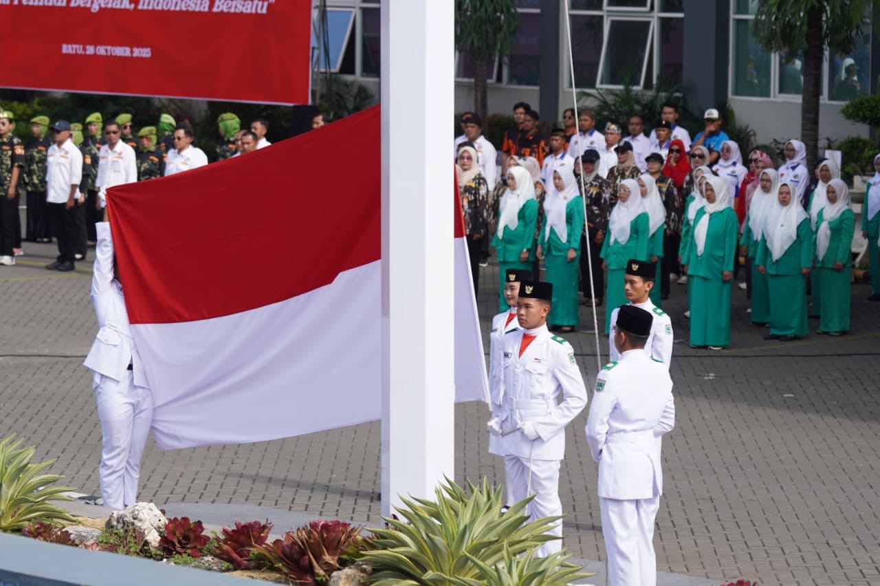 KOTA BATU — Semangat kebangsaan kembali menggema di halaman Balai Kota Among Tani, Selasa (28/10/2025). Pemerintah Kota Batu menggelar Upacara Peringatan Hari Sumpah Pemuda ke-97 dengan penuh khidmat dan semangat persatuan yang membara.