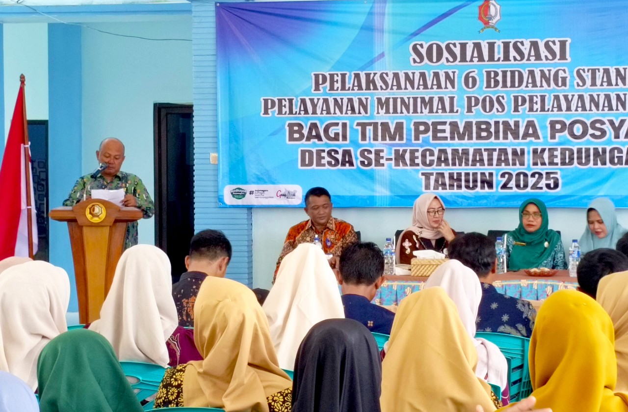 BOJONEGORO – Pemerintah Kecamatan Kedungadem, Kabupaten Bojonegoro, menggelar Sosialisasi Pelaksanaan Enam Bidang Standar Pelayanan Minimal (SPM) Pos Pelayanan Terpadu (Posyandu) tahun 2025 bagi seluruh tim pembina Posyandu desa se-Kecamatan Kedungadem, Kamis (30/10/2025).