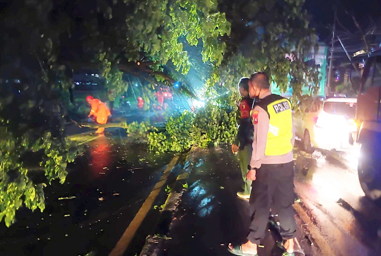 “Pohon tumbang pertama berada di Jl. Panglima Sudirman, sekitar 50 meter dari Pos 1.4 Sumlaran. Titik kedua di Jl. Raya Desa Kebonsari, tepat di depan SDN Kebonsari,” jelasnya.