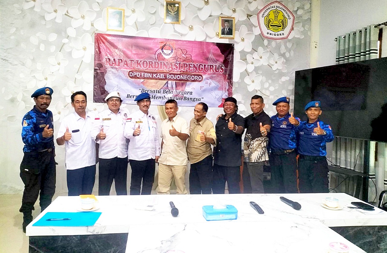 BOJONEGORO — Forum Bela Negara (FBN) Dewan Pimpinan Daerah (DPD) Bojonegoro menggelar rapat koordinasi perdana jelang tahun 2025 di Ruang Adu Ide Universitas Bojonegoro (Unigoro), Rabu siang (19/11/2025).