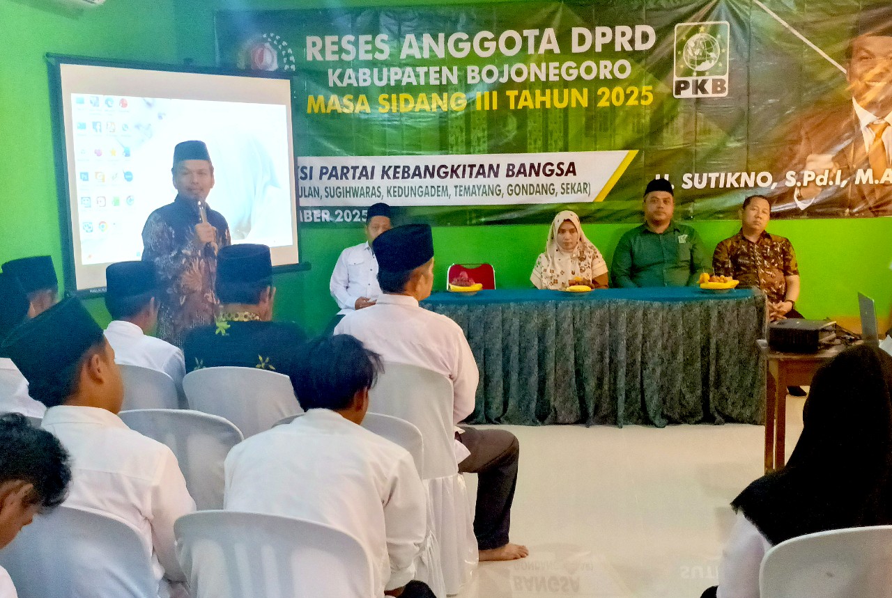 BOJONEGORO — Anggota DPRD Kabupaten Bojonegoro dari Fraksi Partai Kebangkitan Bangsa (PKB), H. Sutikno, S.Pd.I., M.AP, menggelar reses masa sidang III tahun 2025 di Desa Megale, Kecamatan Kedungadem, Sabtu (22/11/2025).