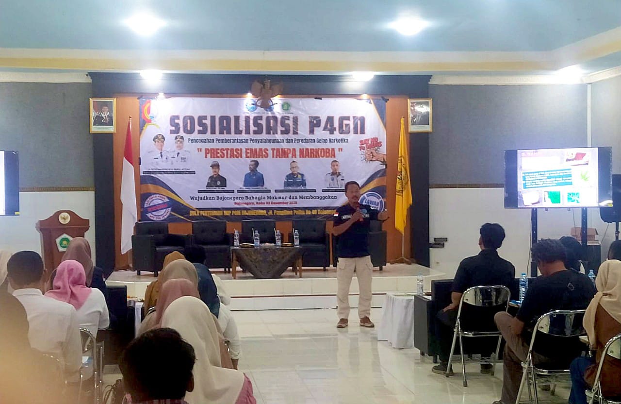 BOJONEGORO — Upaya mencetak generasi emas bebas narkoba kembali digaungkan lewat Sosialisasi Pencegahan, Pemberantasan, Penyalahgunaan, dan Peredaran Gelap Narkoba (P4GN) yang digelar di Gedung IKIP Bojonegoro, Rabu (3/12/2025).