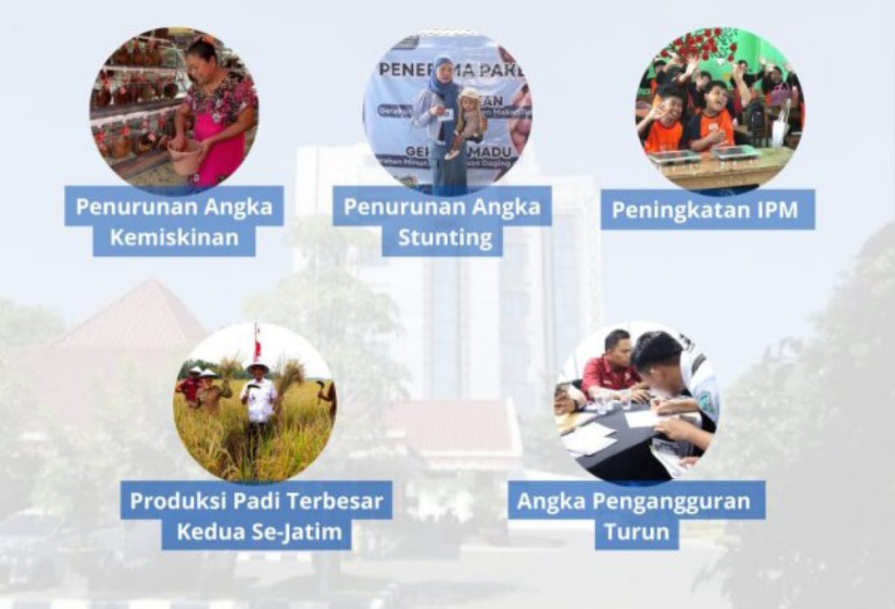 Deretan prestasi ini mencakup penurunan kemiskinan, keberhasilan menekan angka stunting, peningkatan Indeks Pembangunan Manusia (IPM), rekor produksi padi tertinggi kedua di Jawa Timur, serta turunnya angka pengangguran.