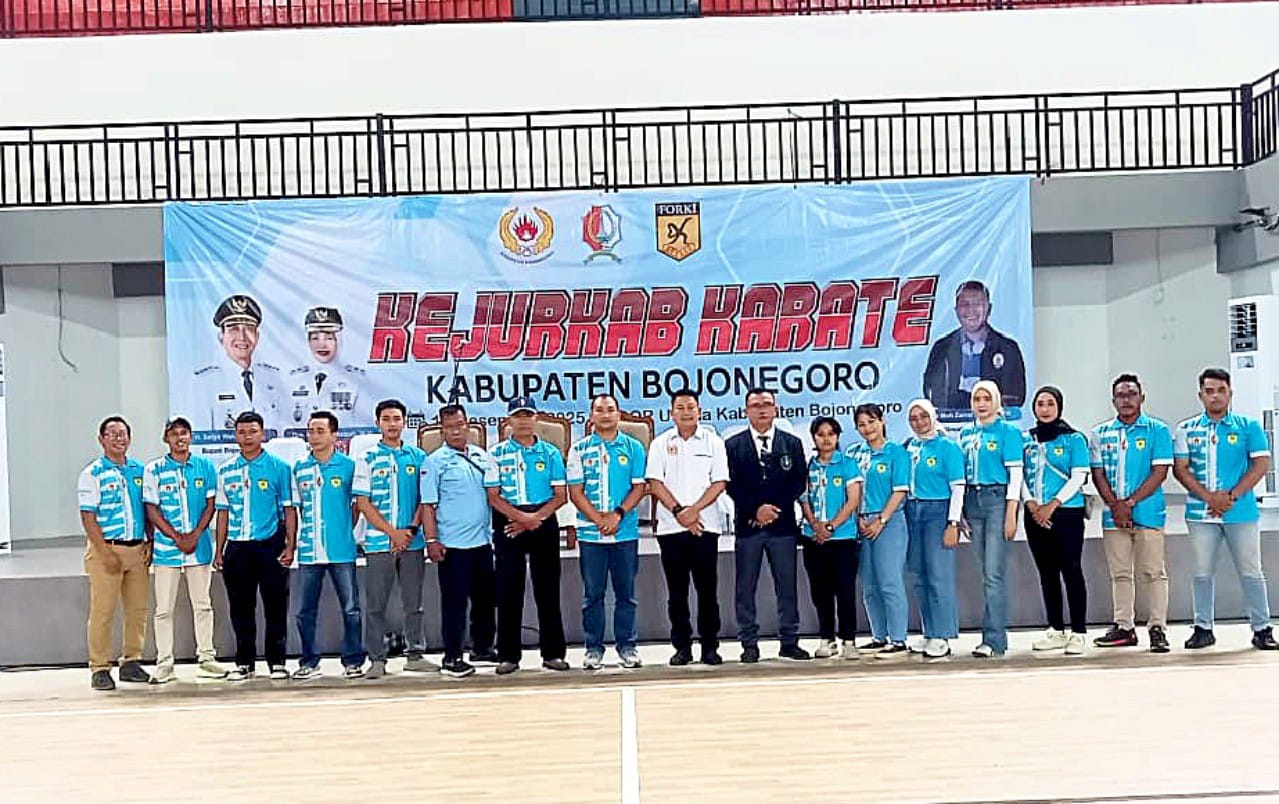 BOJONEGORO — GOR Utama Kabupaten Bojonegoro berubah menjadi arena penuh semangat dan adrenalin saat Federasi Olahraga Karate Indonesia (Forki) Kabupaten Bojonegoro menggelar Kejuaraan Kabupaten (Kejurkab) Karate Bojonegoro Tahun 2025, Minggu (14/12/2025).