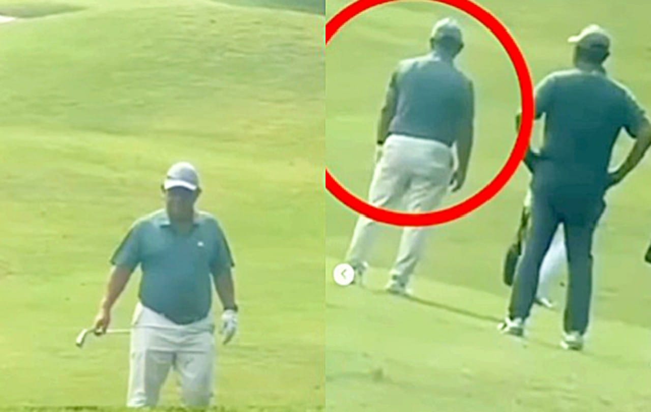 Dalam rekaman tersebut, sosok pria yang diduga kuat adalah Dadan terlihat santai mengenakan kaus hijau dan kacamata hitam bersama sejumlah kolega di lapangan hijau.
