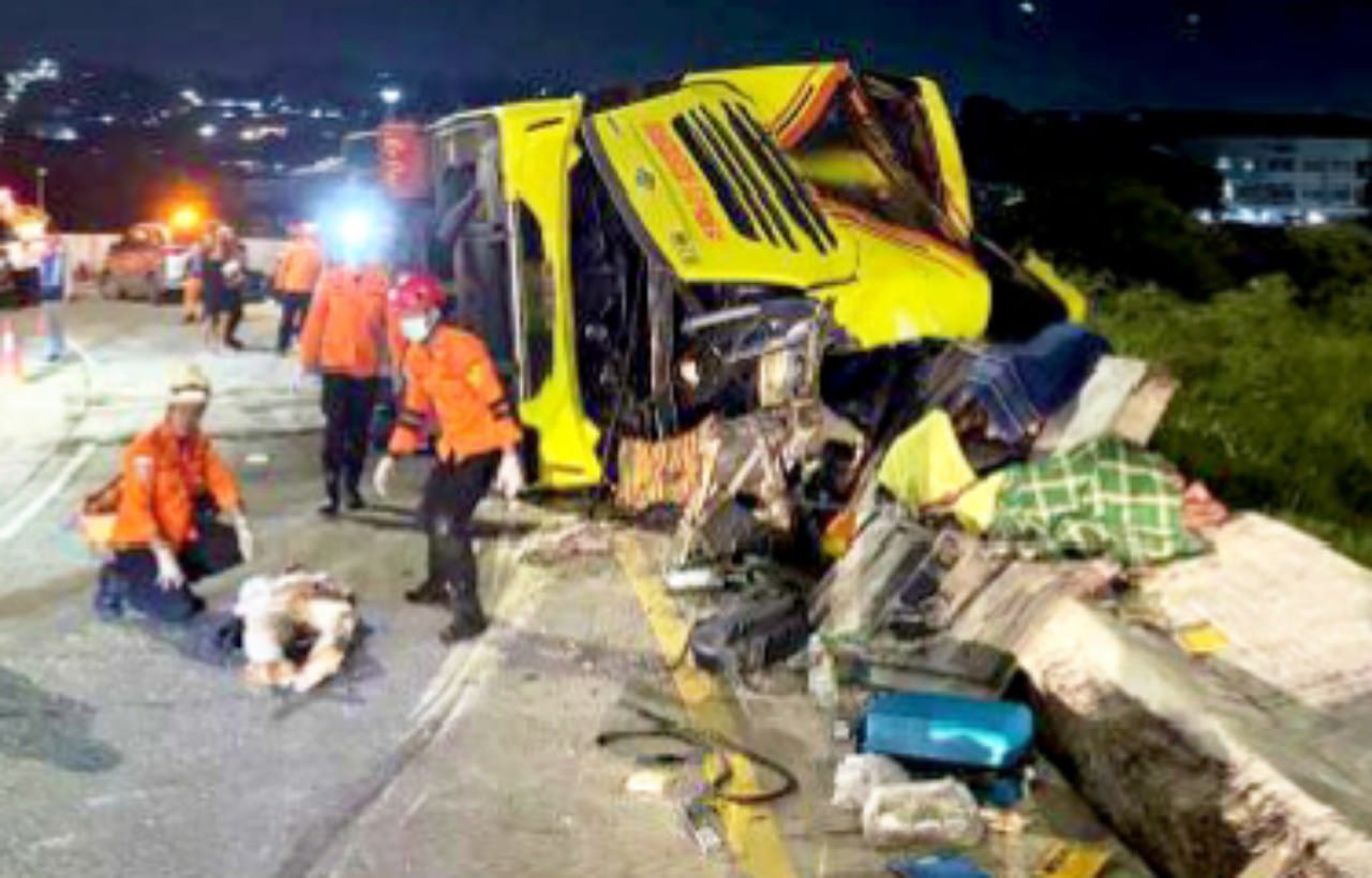 SEMARANG – Sebuah bus pariwisata milik PO Cahaya Trans mengalami kecelakaan tunggal di Exit Tol Krapyak, Semarang yang mengakibatkan 15 penumpang tewas seketika setelah armada tersebut menghantam pembatas jalan dan terguling hebat, Senin (22/12/2025) dini hari.