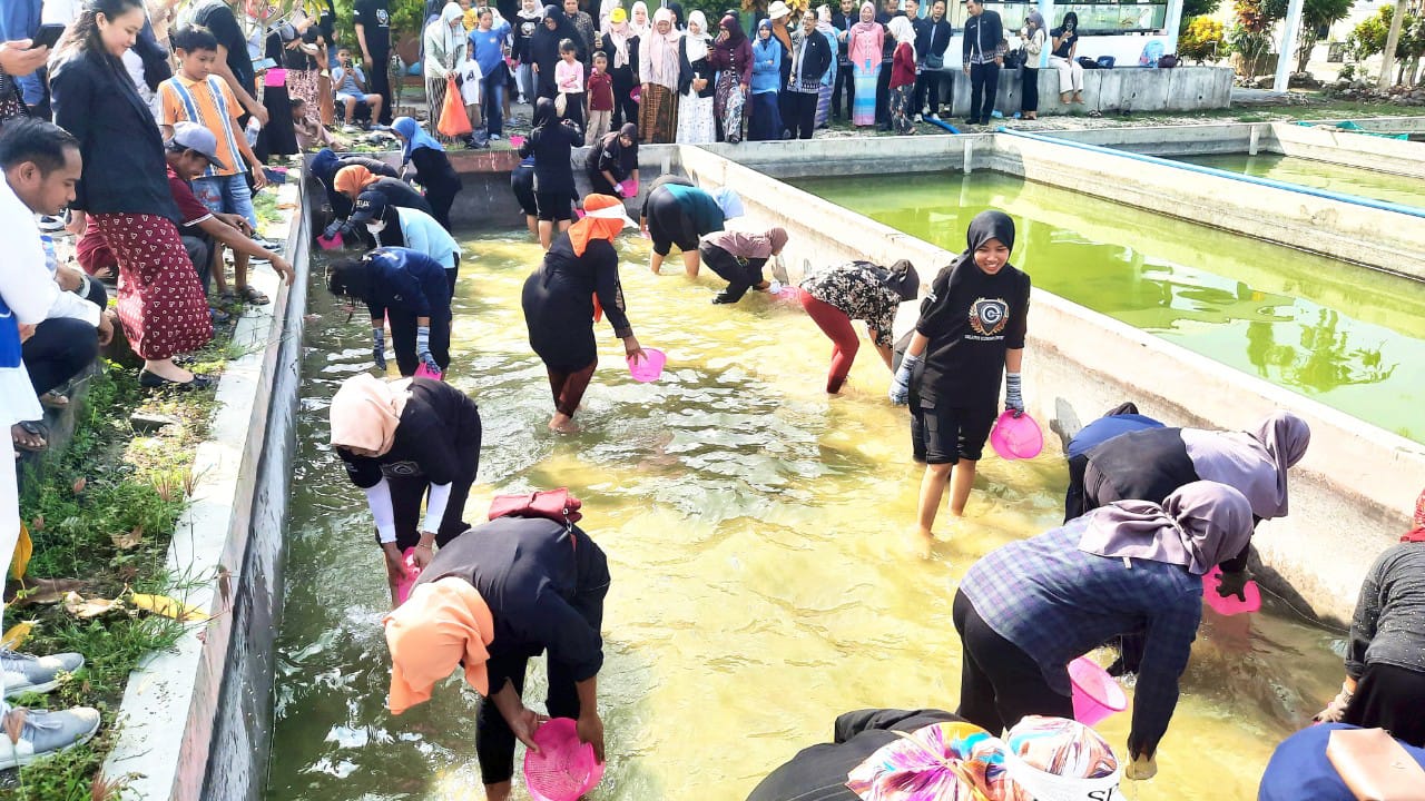 Mereka bukan cuma bermain air, melainkan mengikuti lomba ketangkasan menangkap ikan nila, sebuah kegiatan unik yang digelar khusus untuk memeriahkan Hari Ibu.