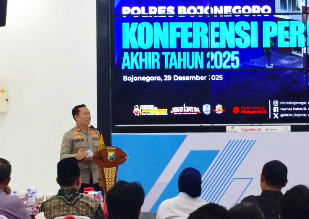 BOJONEGORO – Kepolisian Resor (Polres) Bojonegoro memaparkan capaian kinerja sepanjang periode 2024–2025 dalam Konferensi Pers Akhir Tahun 2025 yang digelar pada Senin (29/12/2025).