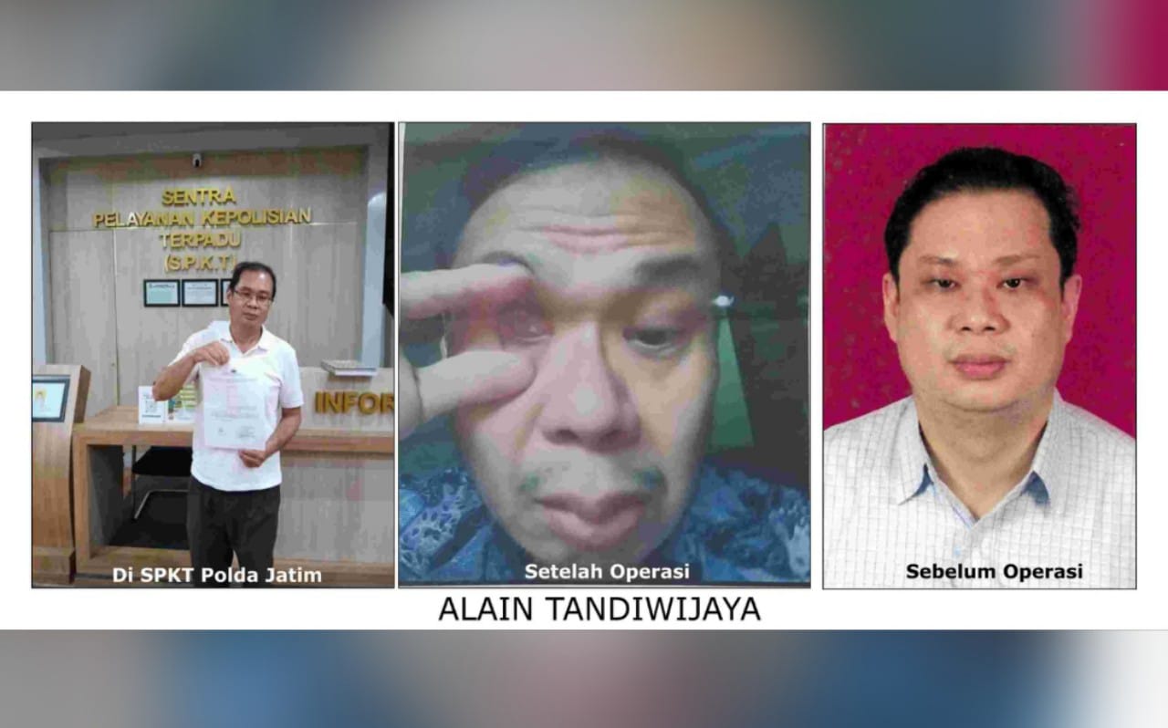 Alain Tandiwijaya (49), anggota Departemen Pusat Usaha Pers PJI (Persatuan Jurnalis Indonesia), melaporkan dugaan malapraktik medis yang dialaminya setelah menjalani operasi mata di Rumah Sakit Mata Masyarakat (RSMM) Jawa Timur.