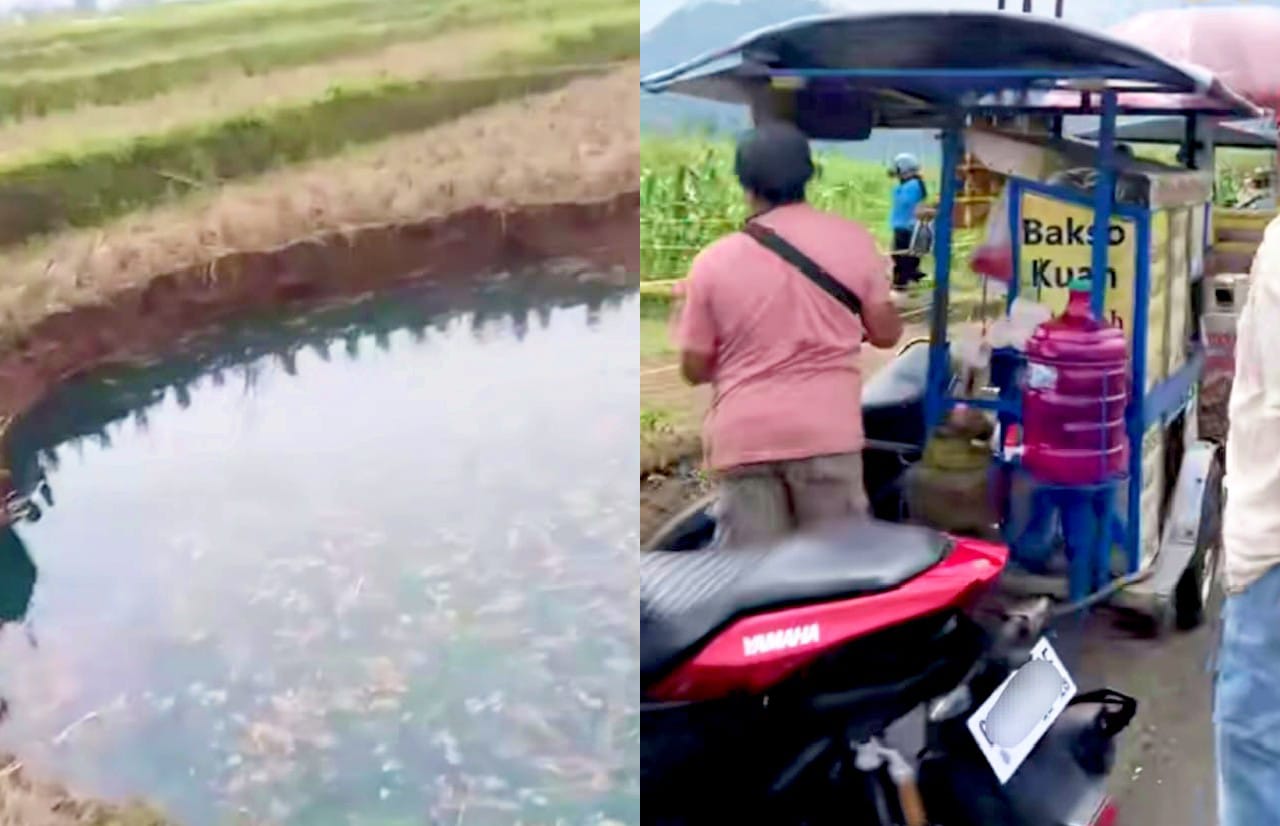 Tak hanya itu, sejumlah pedagang dadakan juga terlihat berjejer di sepanjang jalan di tepi sawah, menambah keramaian di lokasi kejadian.