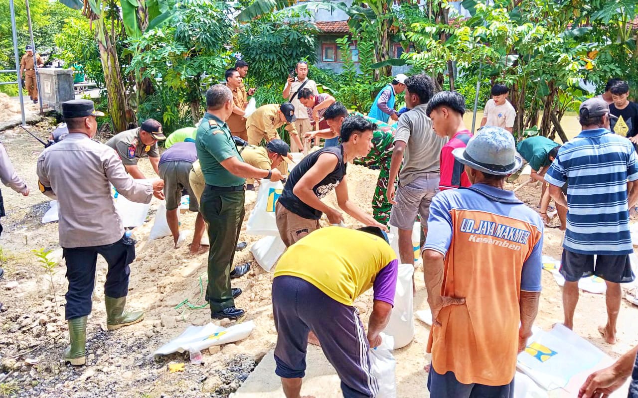 Salah satu langkah utama yang dilakukan adalah pembenahan dan penguatan tanggul darurat secara swadaya guna menahan laju air agar tidak semakin meluas.