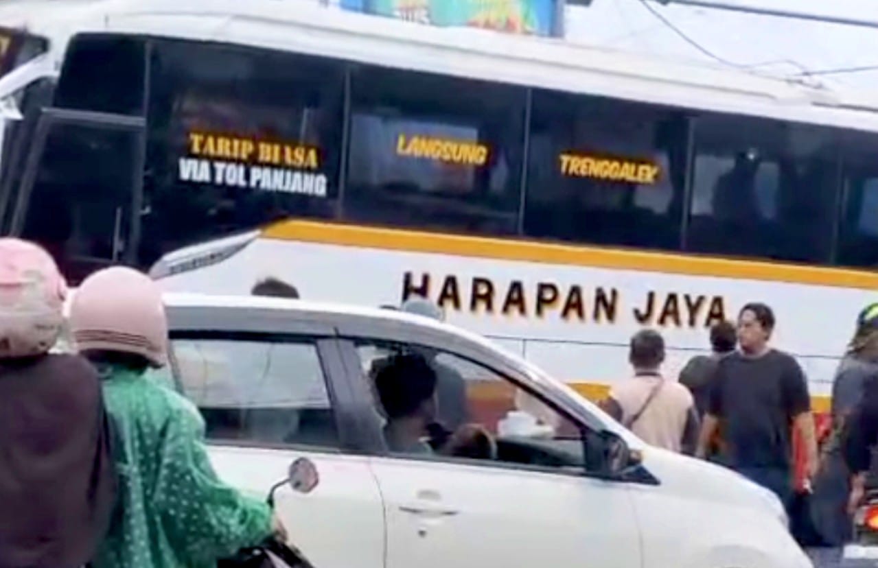 Insiden ini melibatkan sebuah bus Harapan Jaya bernomor polisi AG 7662 UT yang diduga melaju kencang dan menerobos lampu merah.