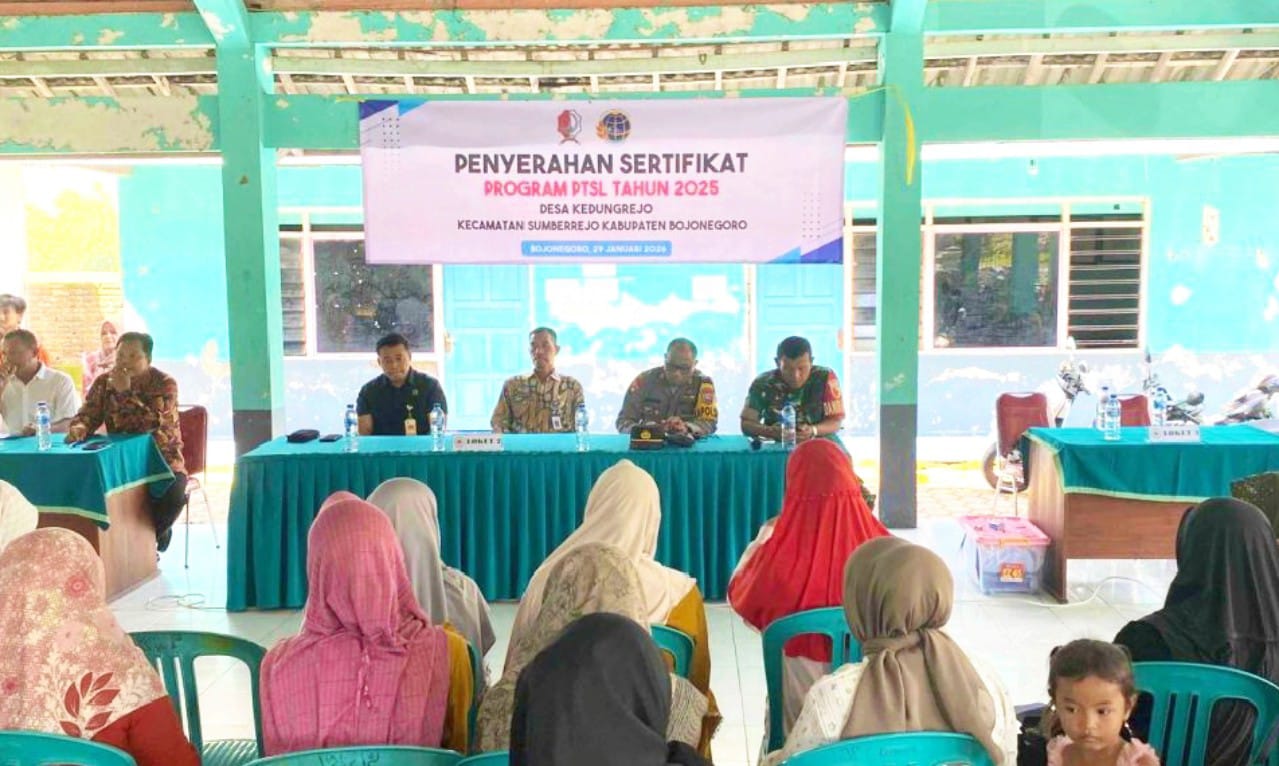 Kegiatan yang digelar di Aula Balai Desa Kedungrejo tersebut menjadi momen penting bagi masyarakat Bojonegoro, mengingat sebanyak 800 bidang tanah resmi diserahkan sertifikatnya kepada warga penerima.