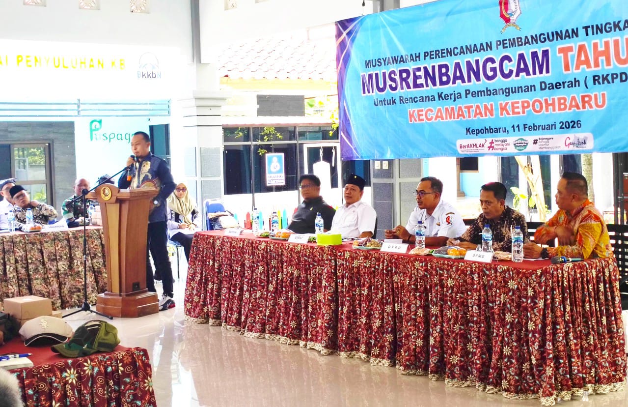 BOJONEGORO – Musyawarah Perencanaan Pembangunan Tingkat Kecamatan (Musrenbangcam) Tahun 2026 dalam rangka penyusunan Rencana Kerja Pemerintah Daerah (RKPD) Kabupaten Bojonegoro Tahun 2027 digelar di Kecamatan Kepohbaru, Kabupaten Bojonegoro, Rabu (11/2/2026).