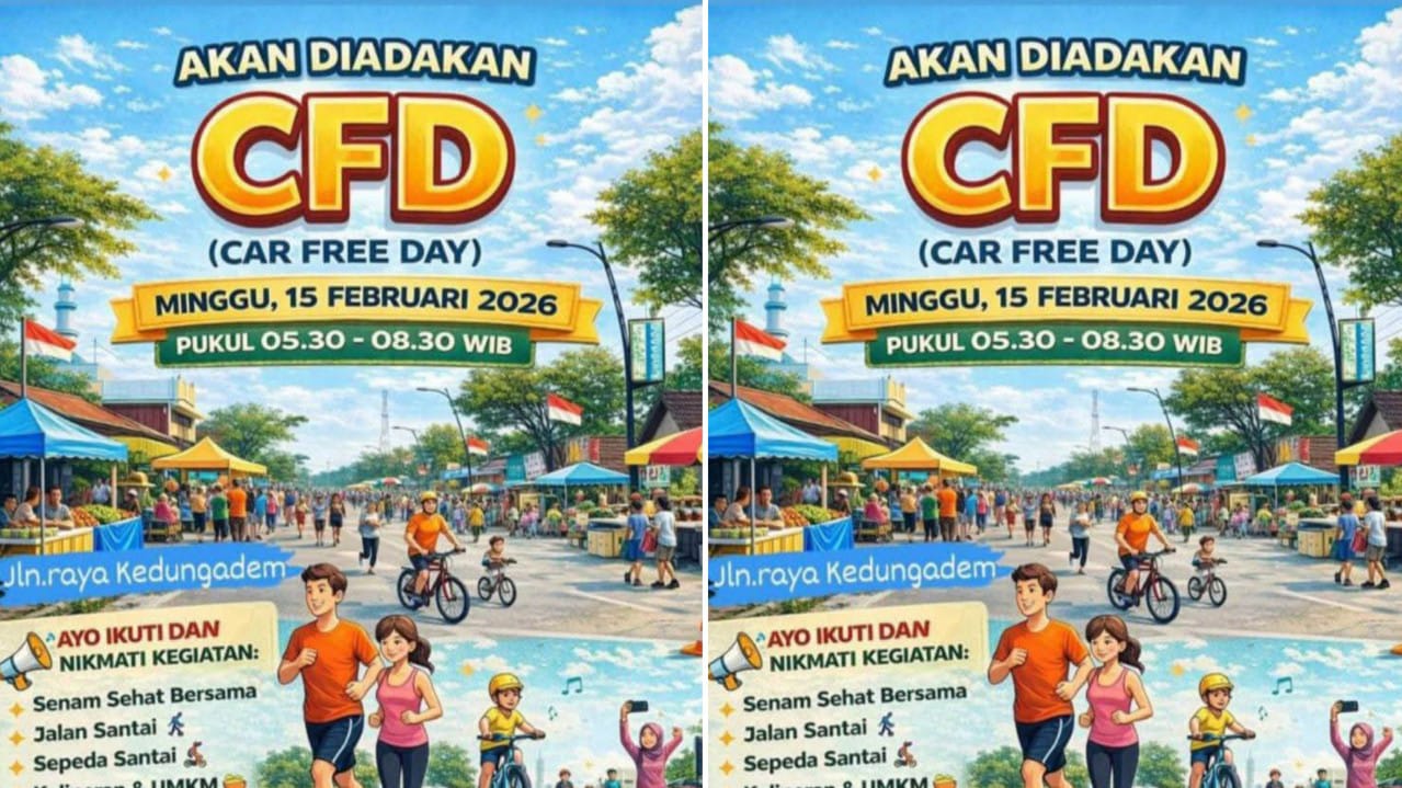 Pemerintah Kecamatan Kedungadem, akan menggelar Car Free Day (CFD) pada Minggu, 15 Februari 2026, mulai pukul 05.30 hingga 08.30 WIB di sepanjang Jalan Raya Kecamatan Kedungadem, Kabupaten Bojonegoro.