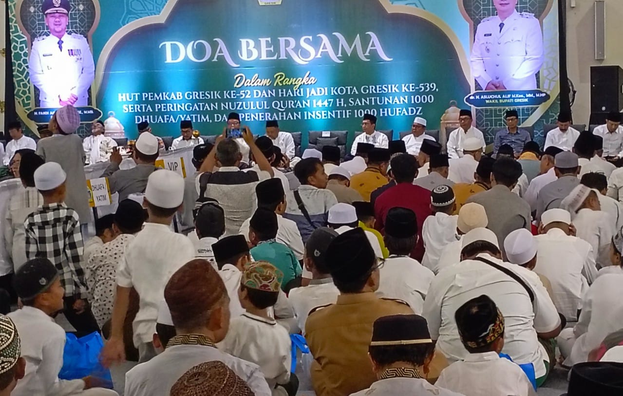 Ribuan masyarakat berkumpul mengikuti doa bersama sekaligus santunan kepada 1.500 anak yatim dalam rangka Hari Ulang Tahun Pemerintah Kabupaten Gresik ke-52 dan Hari Jadi Kabupaten Gresik ke-539.
