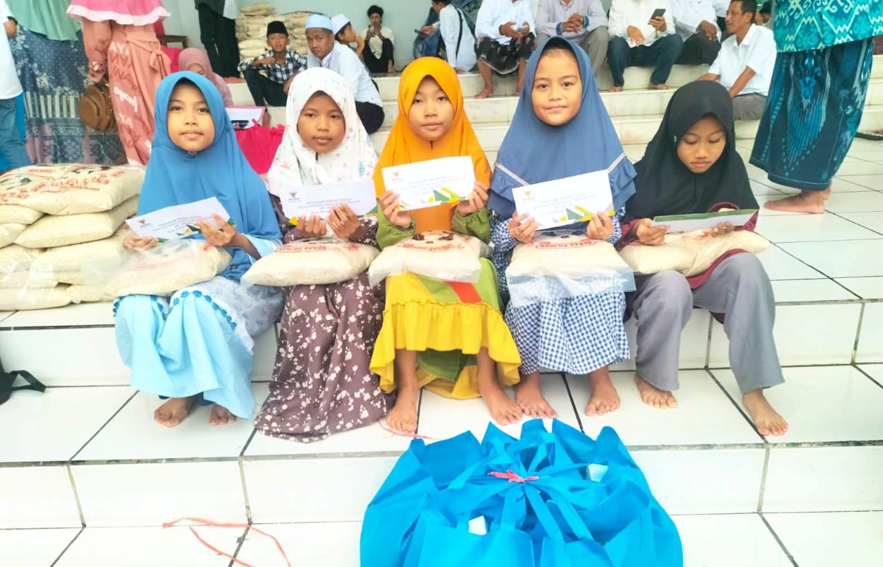 Karina, seorang siswi kelas 3 Madrasah Ibtidaiyah (MI), tak bisa menyembunyikan rasa syukur saat menerima santunan tersebut.