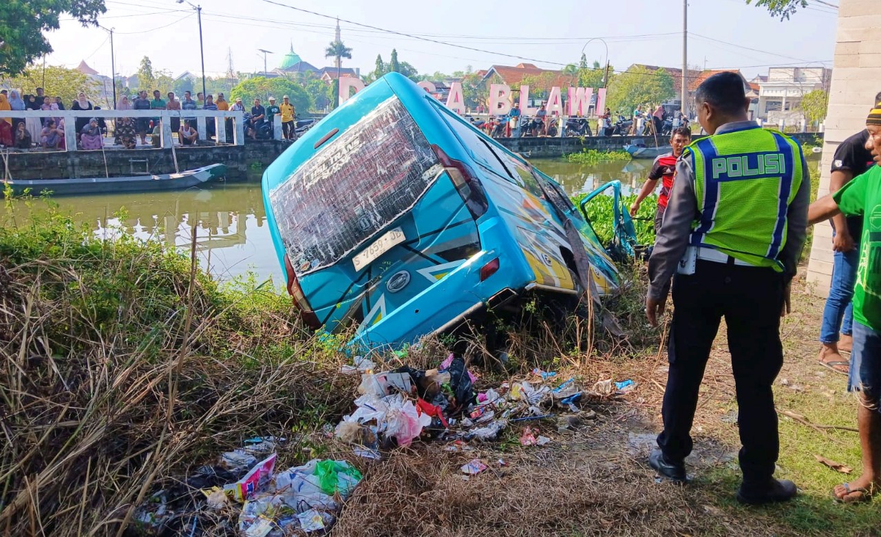 Insiden di Lamongan ini melibatkan sebuah mobil Elf yang mengalami kecelakaan tunggal hingga terjun ke sungai.