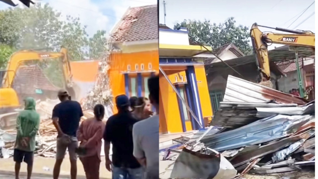 Rumah permanen berwarna oranye di Pati itu diratakan menggunakan alat berat, memicu beragam spekulasi publik.