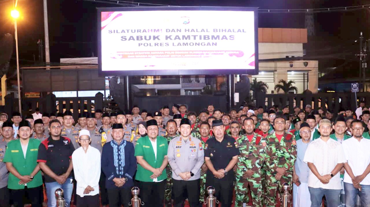 Ratusan warga Lamongan dari berbagai elemen masyarakat berkumpul dalam kegiatan silaturahmi dan halal bihalal bertajuk Sabuk Kamtibmas.